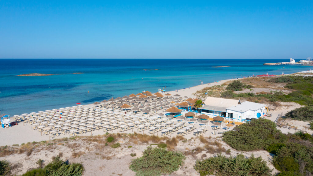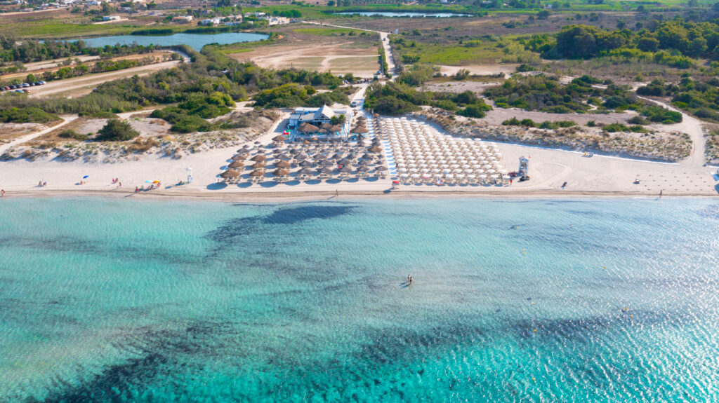 Servizio Spiaggia A circa un chilometro di distanza è possibile raggiungere lo stabilimento balneare attrezzato dove poter immergersi nelle meravigliose acque del mare cristallino del Salento e passeggiare lungo lo splendido litorale di sabbia bianca e finissima. Se sceglierete il nostro servizio spiaggia avrete una postazione con ombrellone, due lettini e una sdraio, per godere ogni giorno di relax e bellezza!